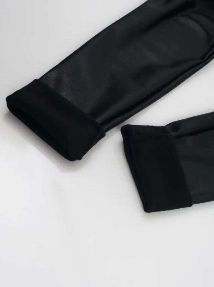 Лосини утеплені на флісі з екошкіри чорні MSO